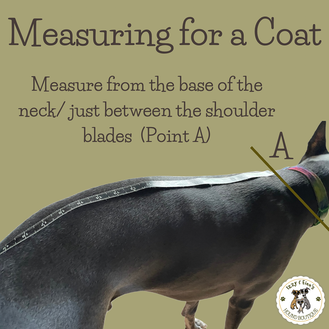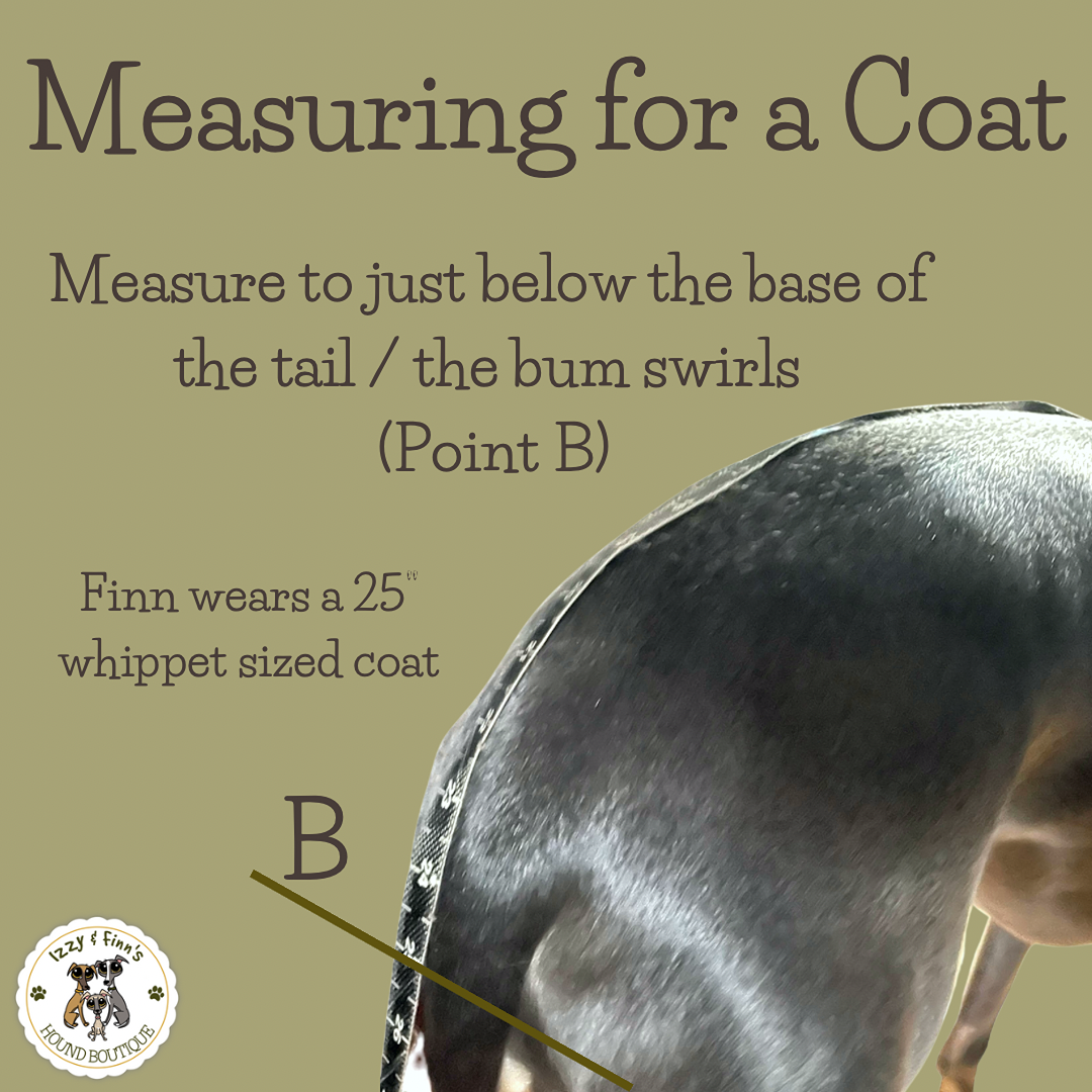 For a harness hole: With your dog wearing their harness, start from Point A, as above. Measure down to the D ring on their harness (B) in inches